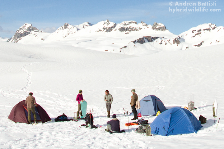 Rock ptarmigan census in late spring 2013, exceptional overnight on the snow.