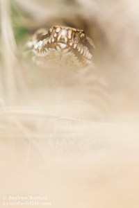Vipera walser, una femmina in termoregolazione nonostante la nebbia. La capacità di restare in attività anche in condizioni meteo poco ottimali, permette a questo animale di sopravvivere in un contesto alpino decisamente piovoso e umido – Canon 7D, sigma 15mm f/2.8 fisheye (f/8.0, 1/125s, 2000iso)