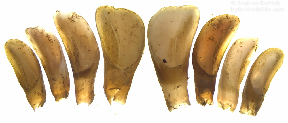 Una delle abitudini più comuni delle volpi consiste nel staccare pezzi di grossi animali morti per consumarli altrove o per portarle ai propri cuccioli, qui i denti incisivi completi di una mandibola di capriolo – Stereoscope Leica EZ4D, LAS EZ 3.0