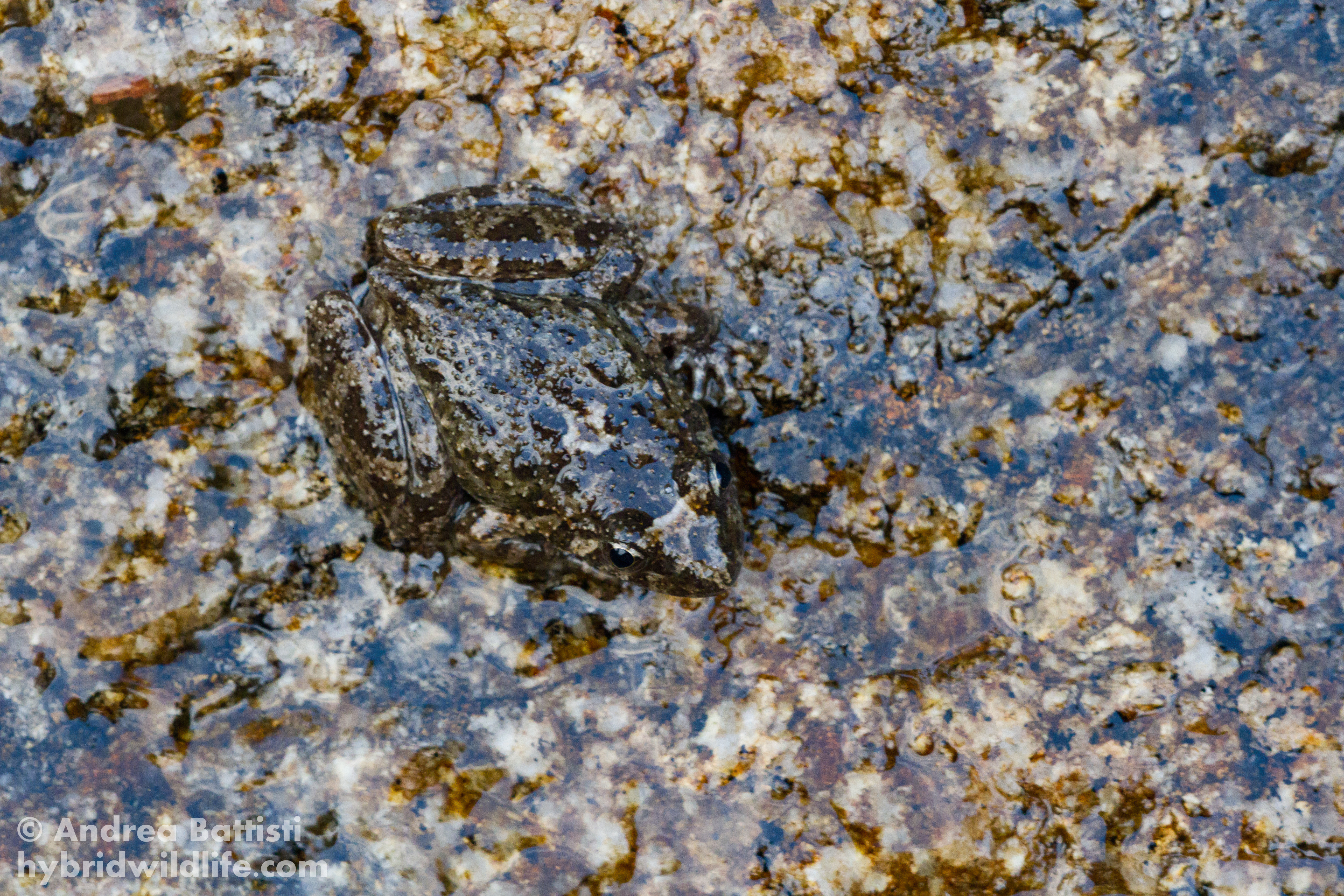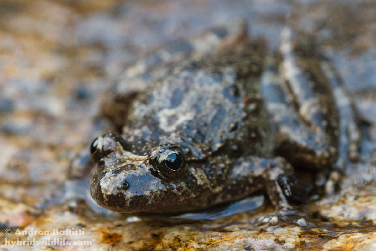 Un dicoglosso corso si mimetizza perfettamente sul granito bagnato di un riale montano, Corsica – Canon 7D, Sigma 150 macro f2.8 (f/6.3, 1/125, 2000 iso)